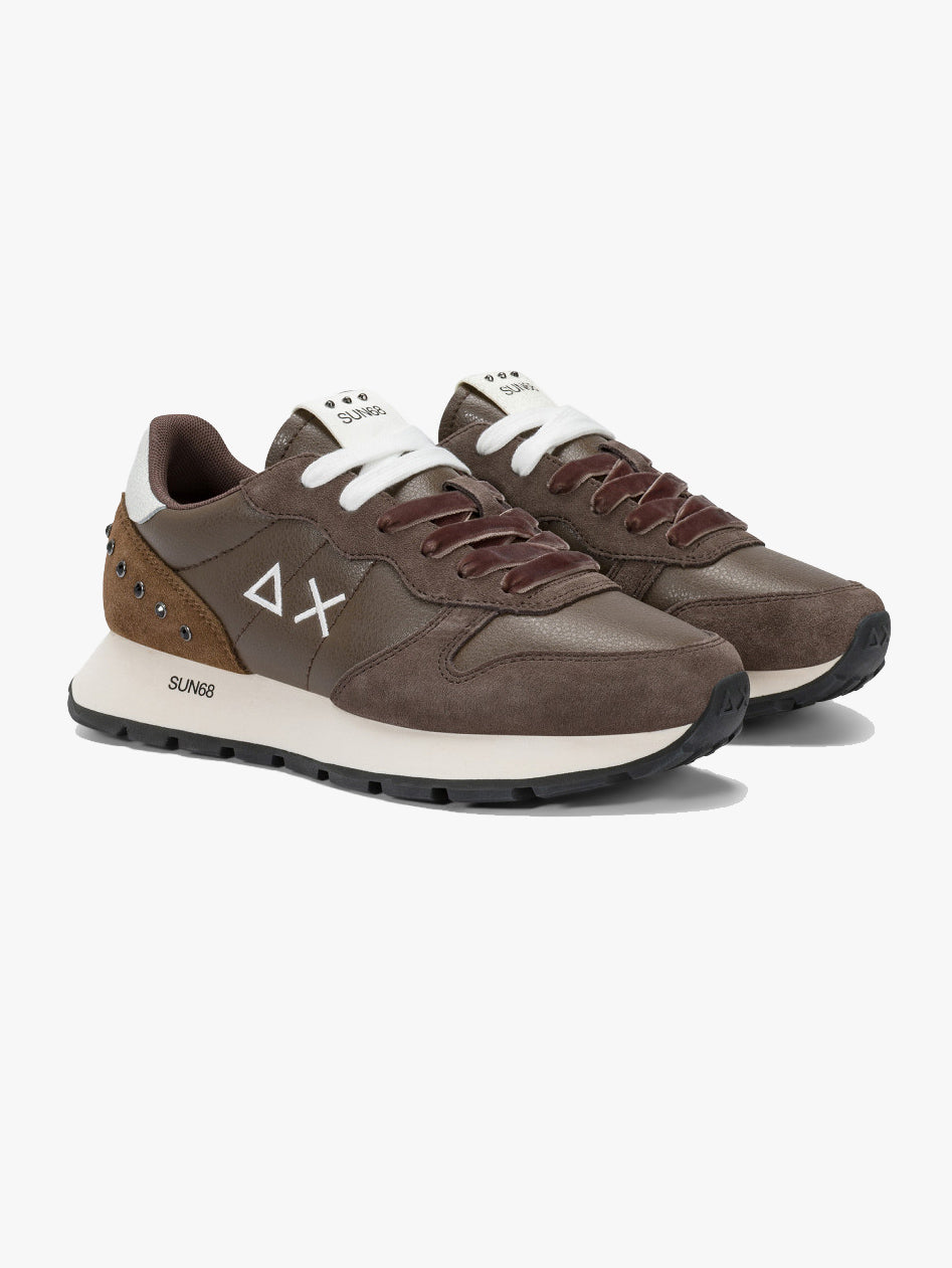 La Ally Studs unisce comfort sportivo e dettagli rock, con un design running impreziosito da borchie applicate sul retro. Realizzata in similpelle e suede, presenta il logo ricamato, l’etichetta logata sulla linguetta e una fodera in micro mesh traspirante. La suola in EVA fresata a mano con battistrada in gomma garantisce ammortizzazione e stabilità, rendendola la sneaker perfetta per look casual dal carattere deciso.