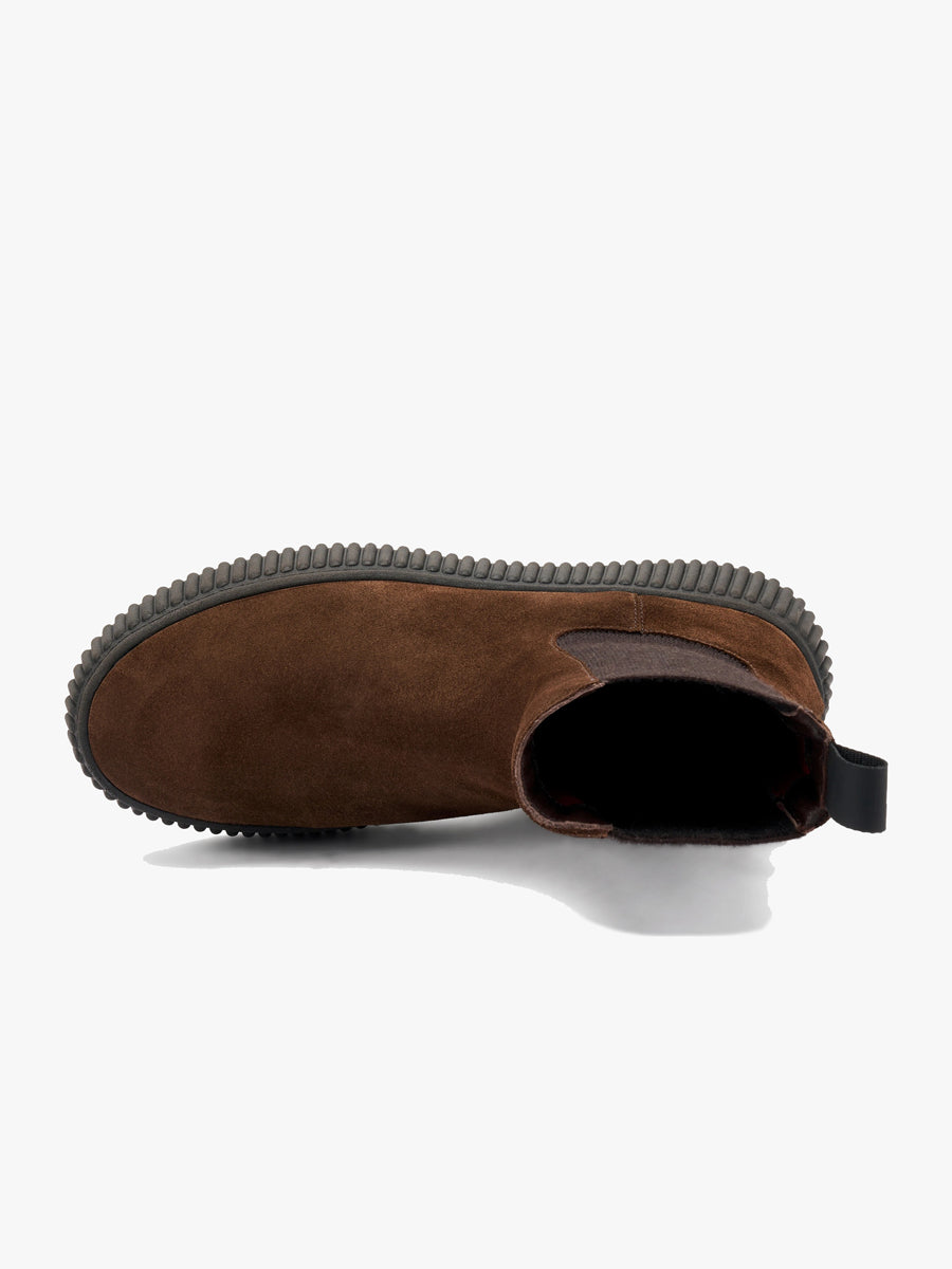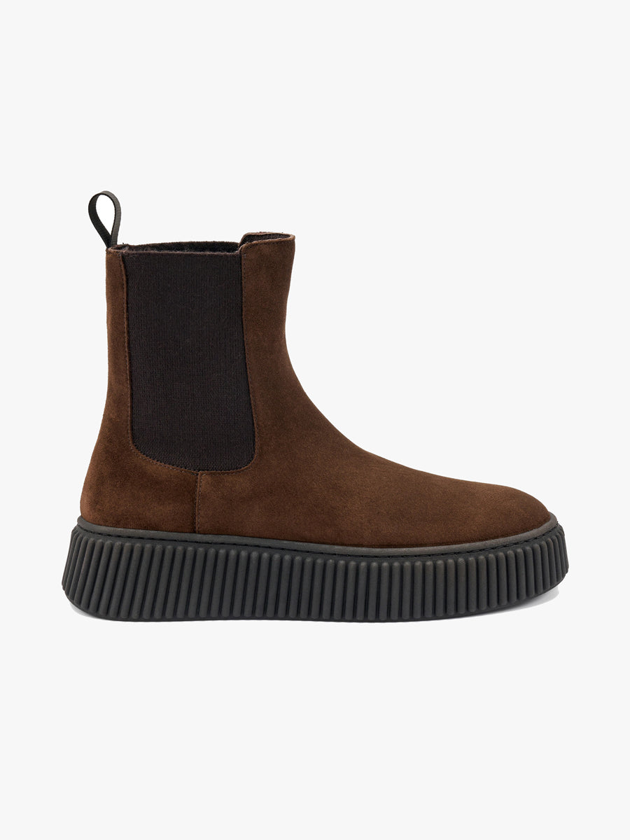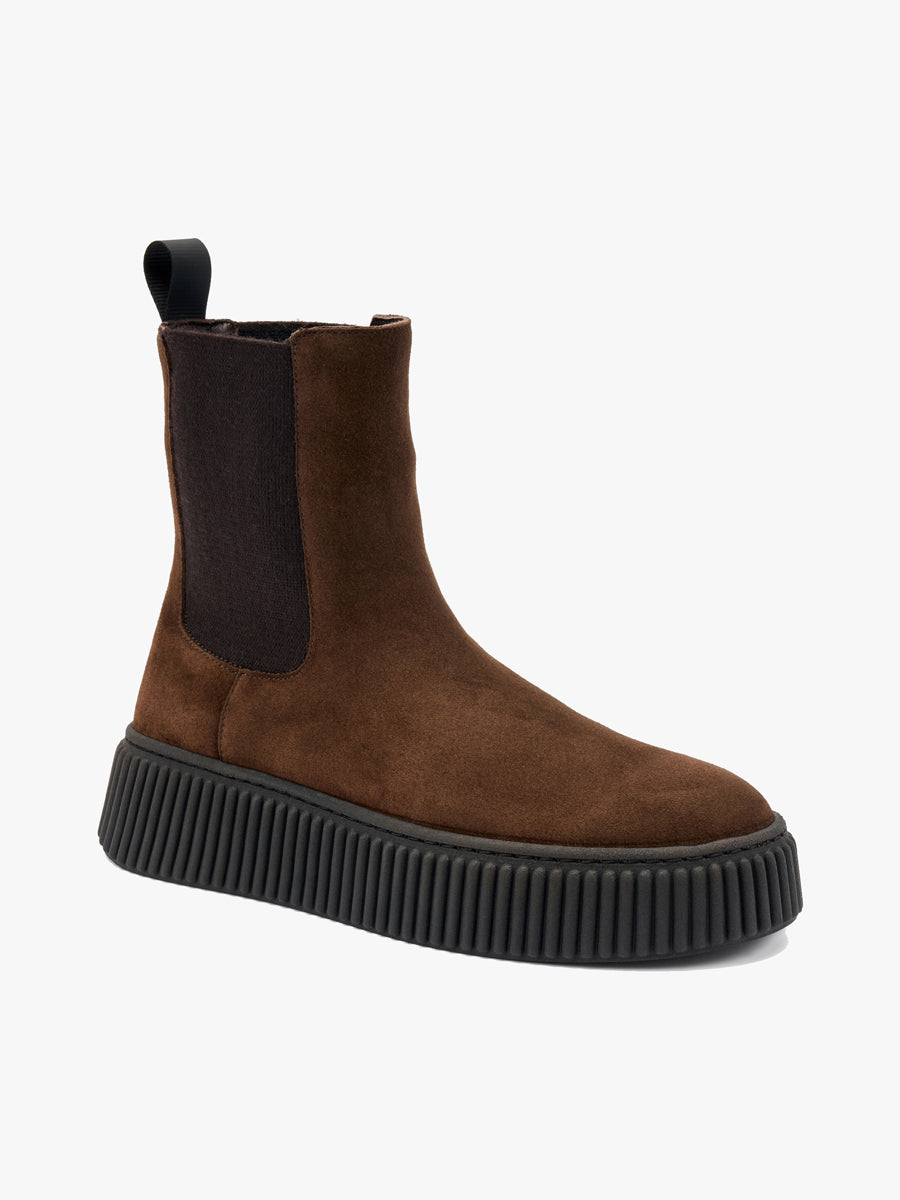 La semplicità incontra una suola dal design a coste, contemporaneo, moderno, capace di trasformare un semplice beatles in un accessorio cool soprattutto nella nuance cioccolato.