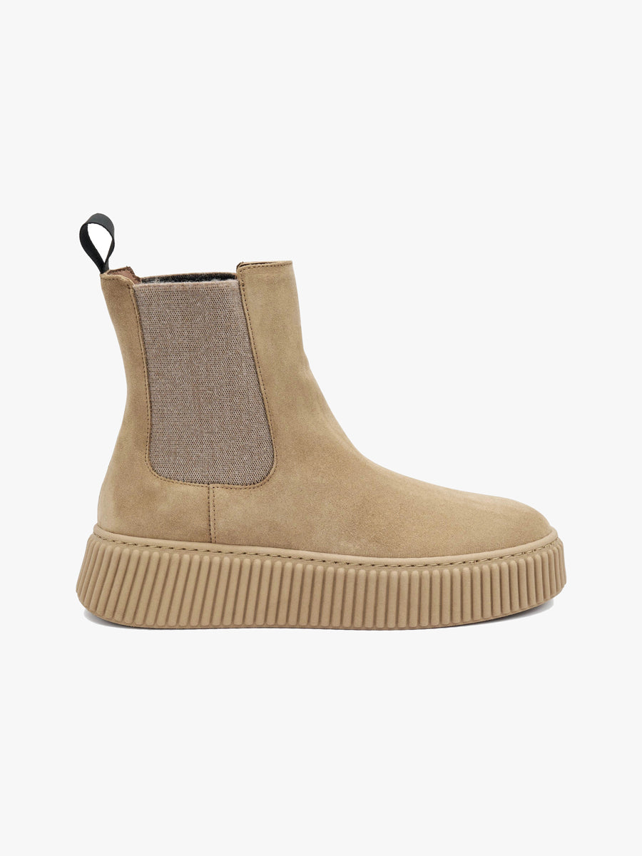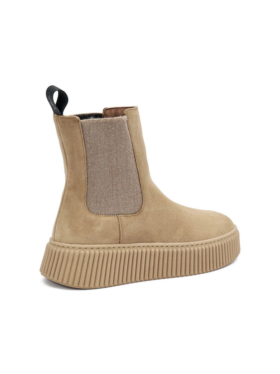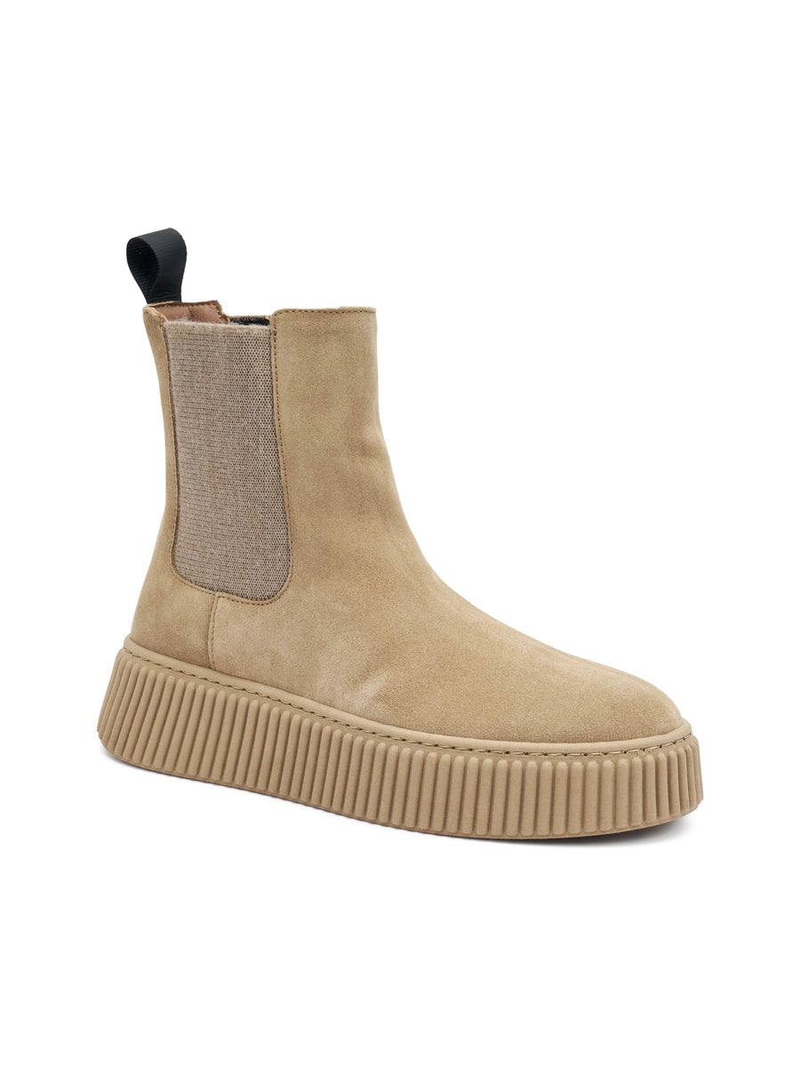 La semplicità incontra una suola dal design a coste, contemporaneo, moderno, capace di trasformare un semplice beatles in un accessorio cool soprattutto nella nuance cioccolato.
