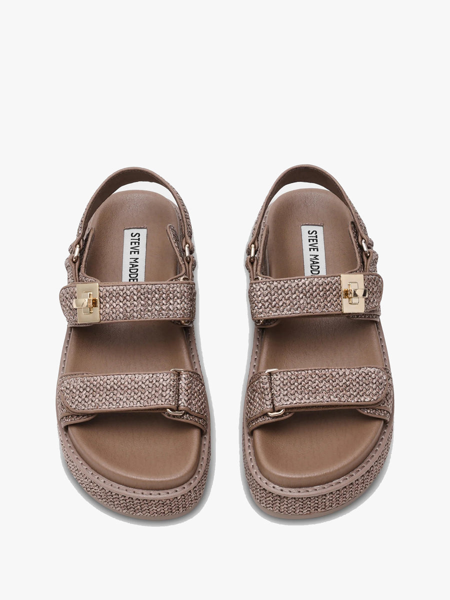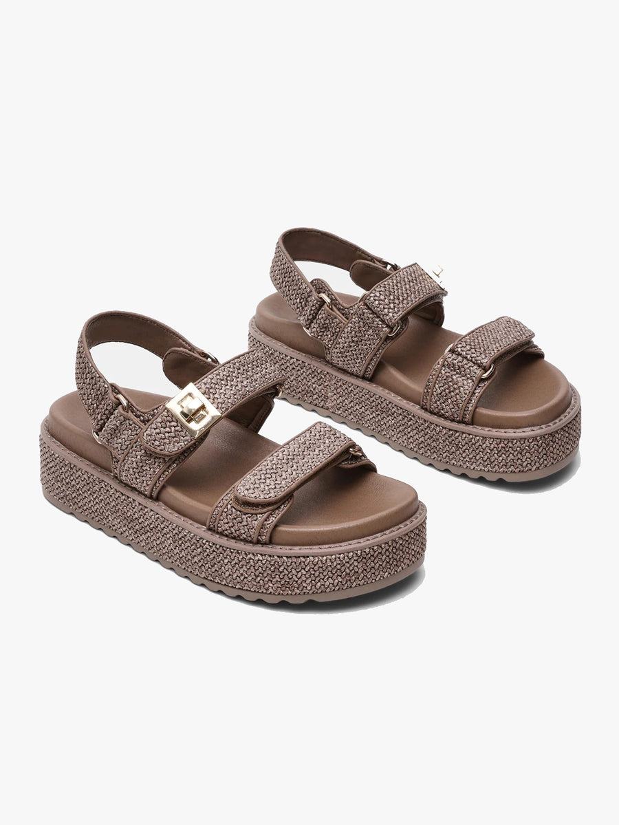 Questo sandalo flatform ha uno stile iconico e prende il design del classico sandalo MONA con il suo iconico dettaglio turnlock e lo eleva con una suola flatform chunky per aggiungere un tocco di altezza extra.