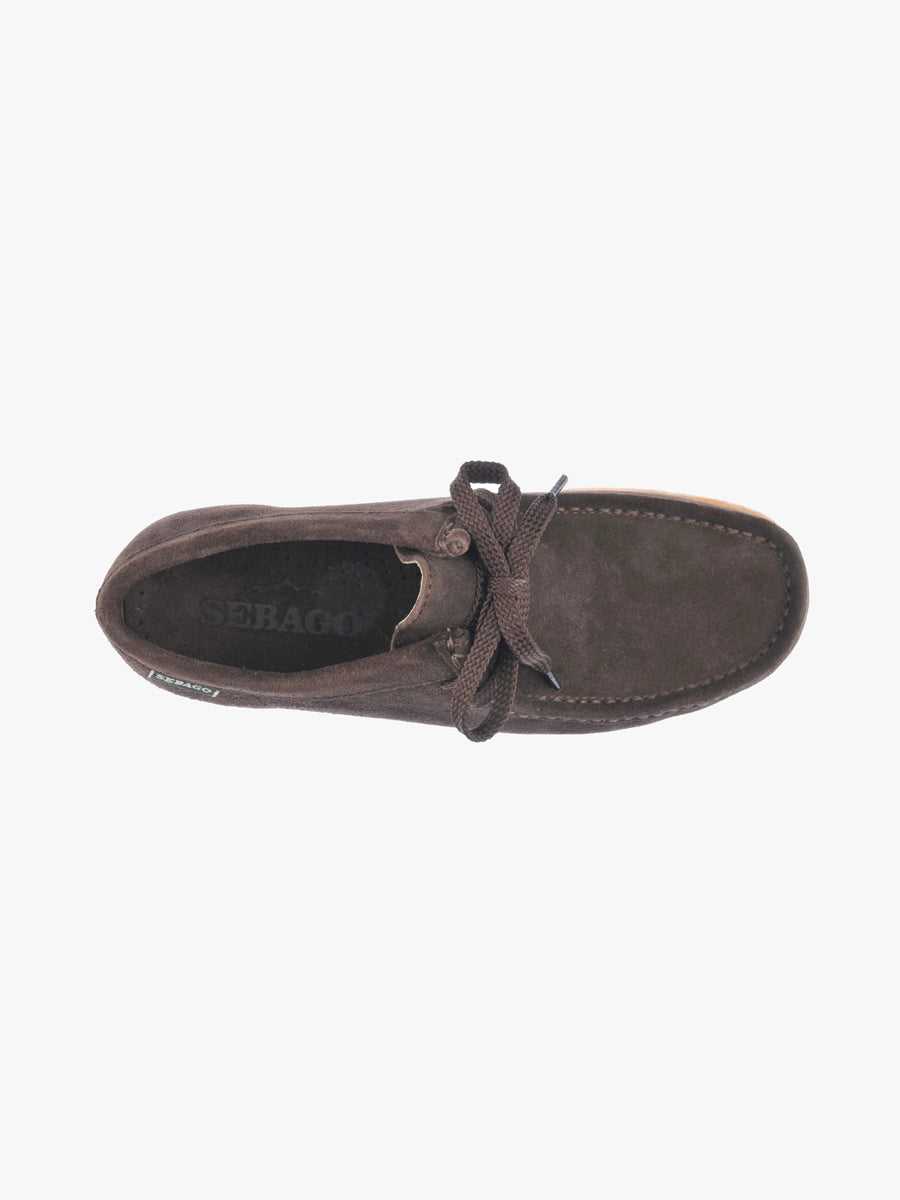 Semplice e lineare, questo comodo moc allacciato ha linee pulite e semplici, che trascendono le tendenze della moda. Cucito a mano artigianalmente e ispirato alle calzature tradizionali degli indiani d'America, rispecchia quell'atteggiamento rilassato e casual che approdò sulla scena della musica pop negli anni '90. In pelle scamosciata, presenta struttura tubolare, taglio a punta moc, fodera in pelle e suola in gomma Para 2 strati per garantire elevata elasticità e resistenza all'abrasione e all'acqua.